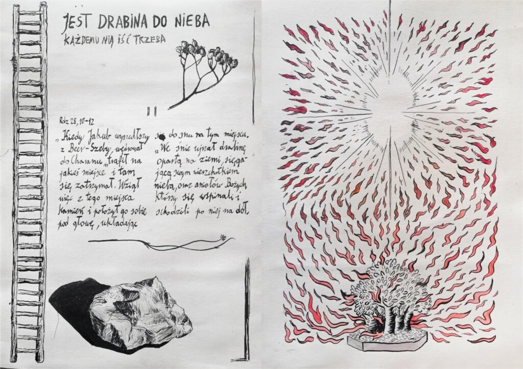 tusz i akwarela na papierze