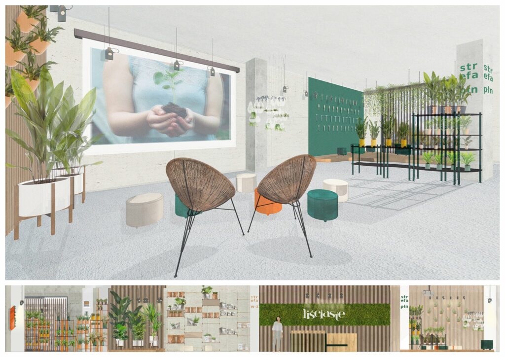 Projekt wnętrza concept store „Liściaste”