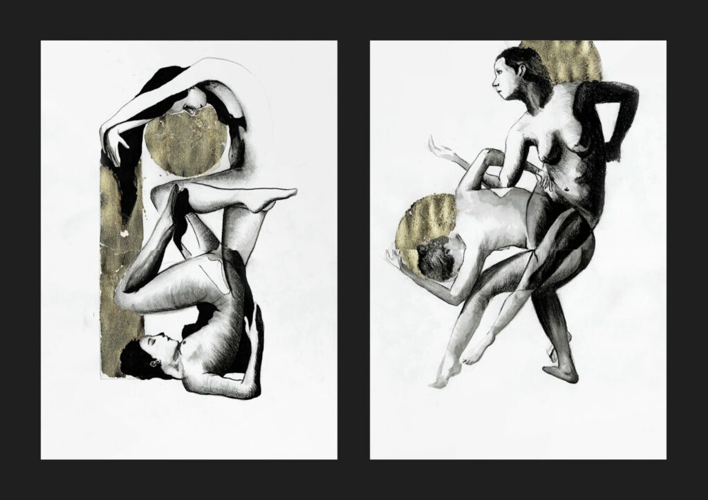 rysunek, tusz i węgiel