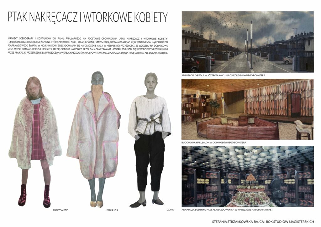 Projekt kostiumów do filmu fabularnego według powieści H. Murakamiego pt. „Ptak nakręcacz i wtorkowe kobiety”