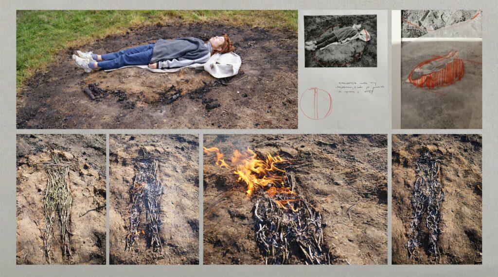 land art sticks, soil, fire, ash