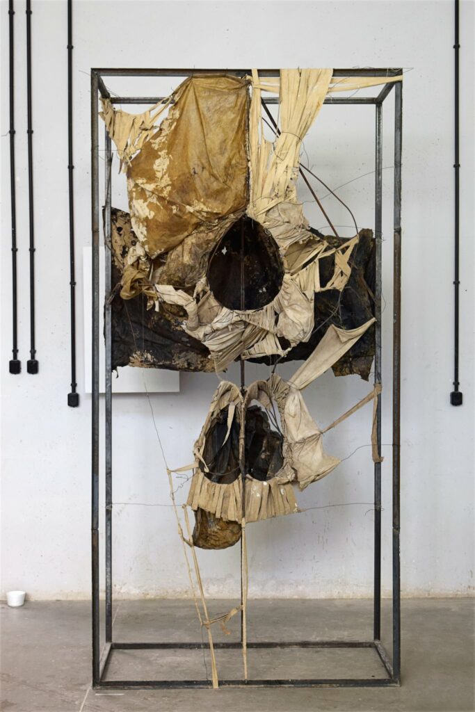 Fabric, wax, dye, steel