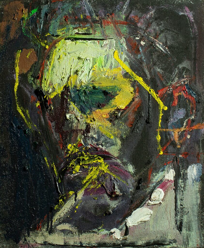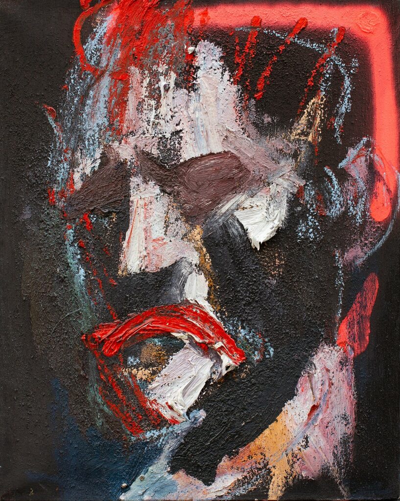 oil, coloured pencil, spray on canvas