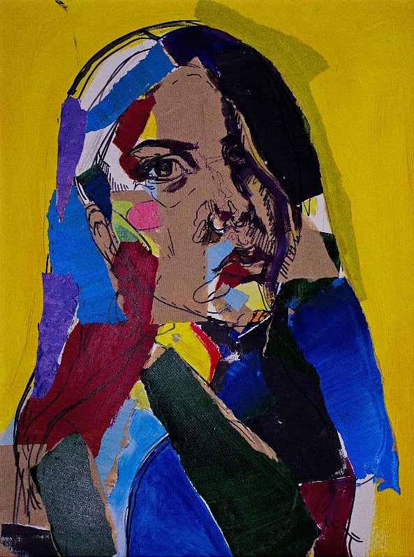 collage, acrylic, marker on paper