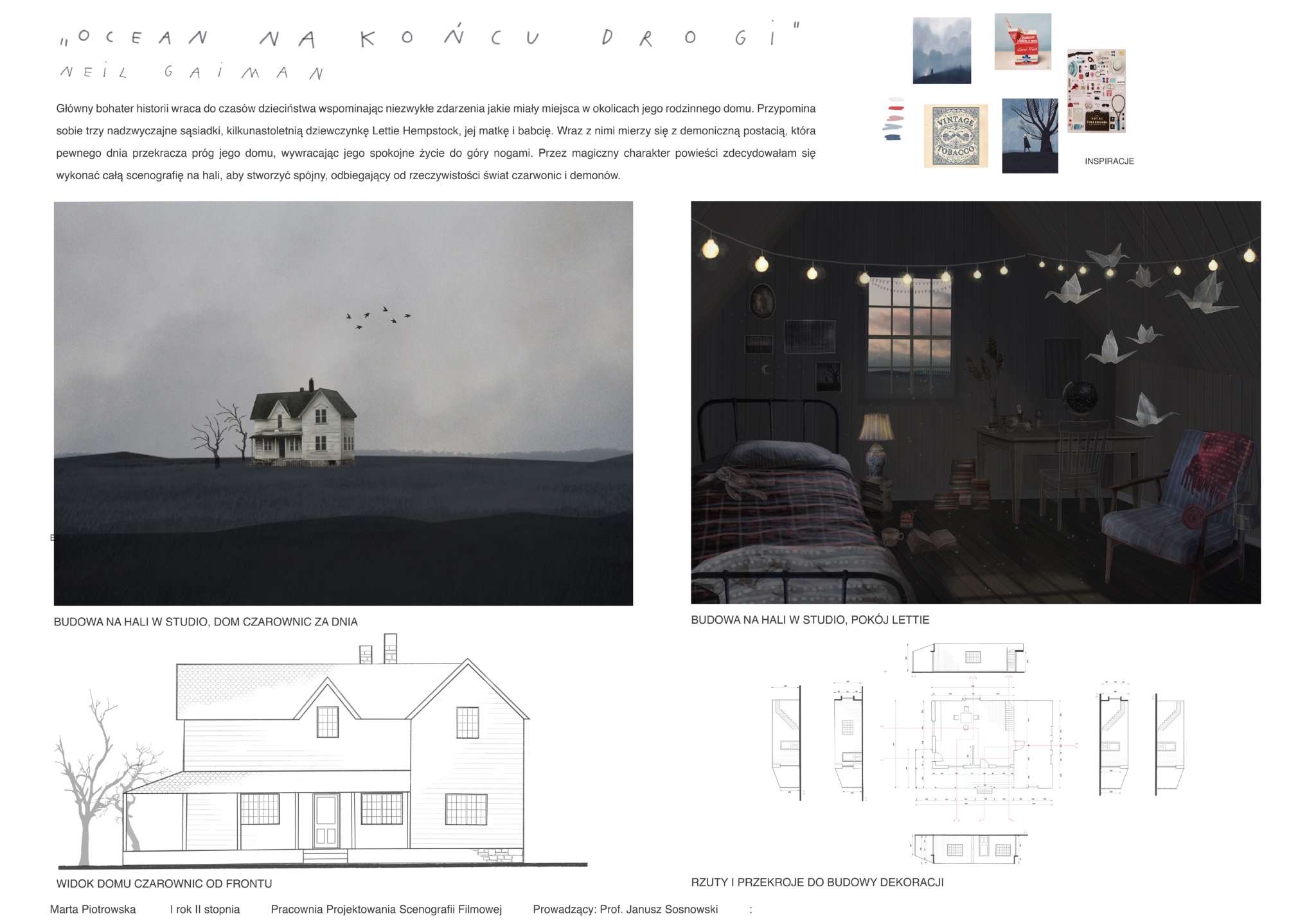 Projekt scenografii do filmu fabularnego według powieści N. Gaiman pt.„Ocean na końcu drogi”