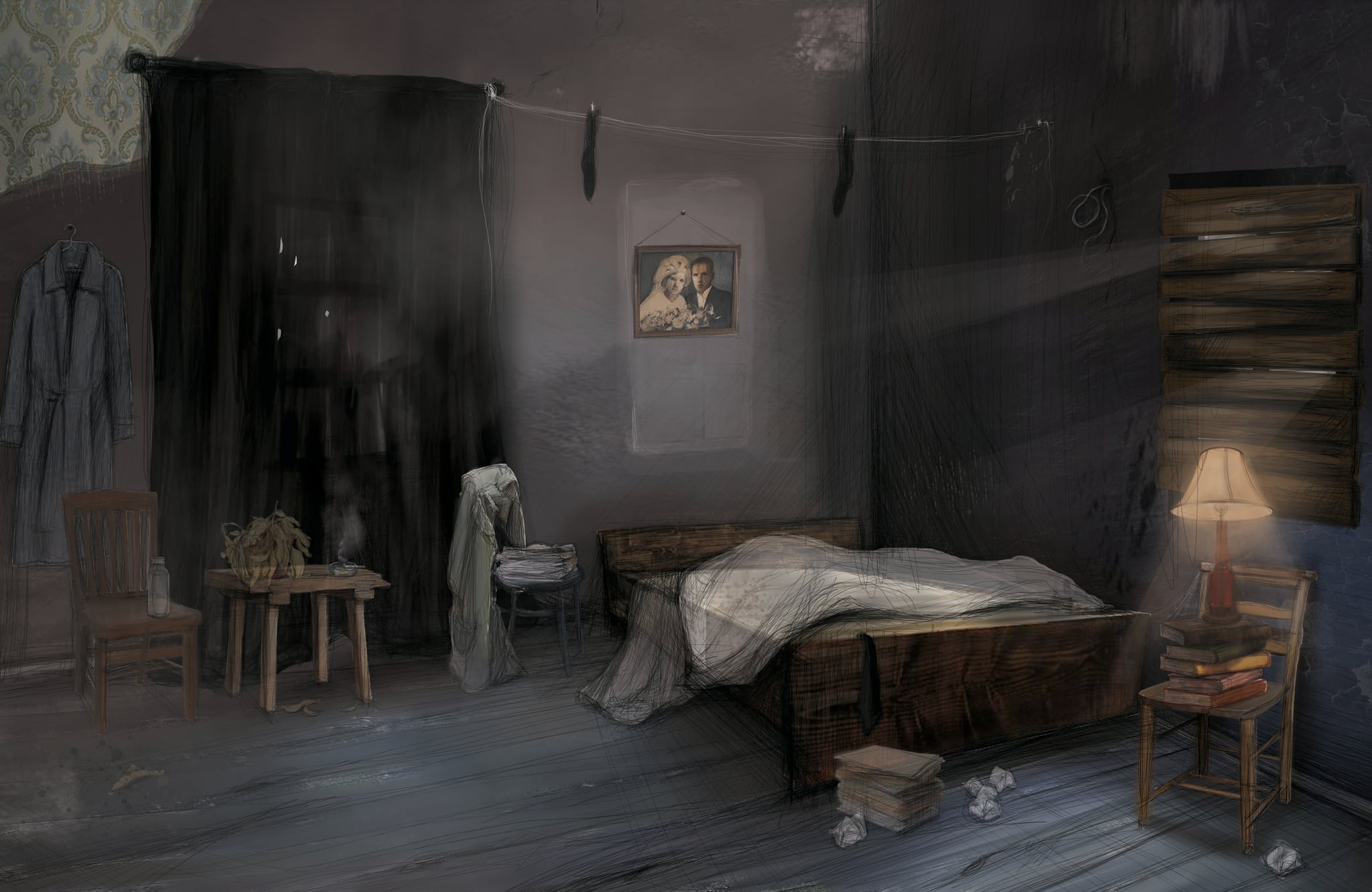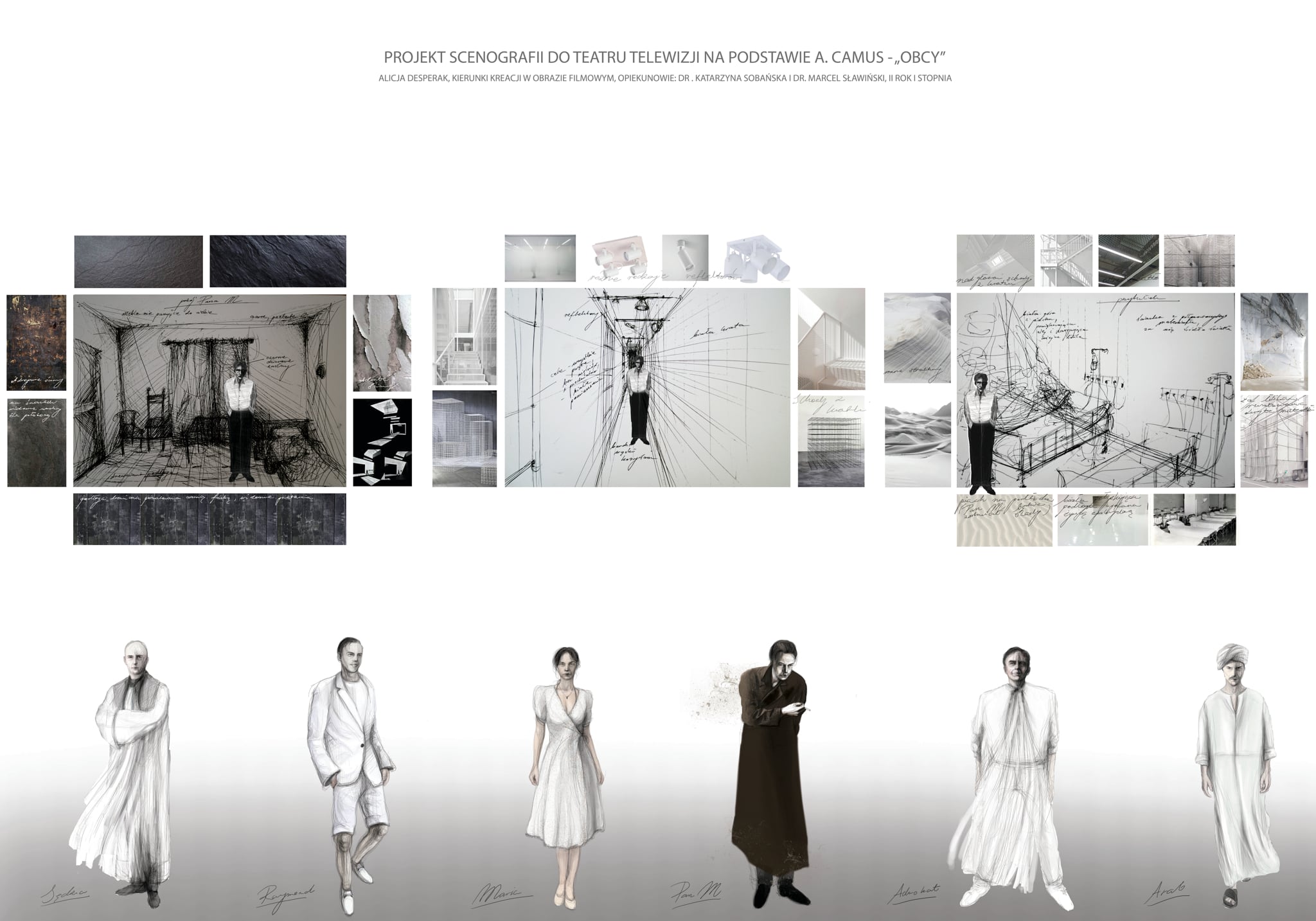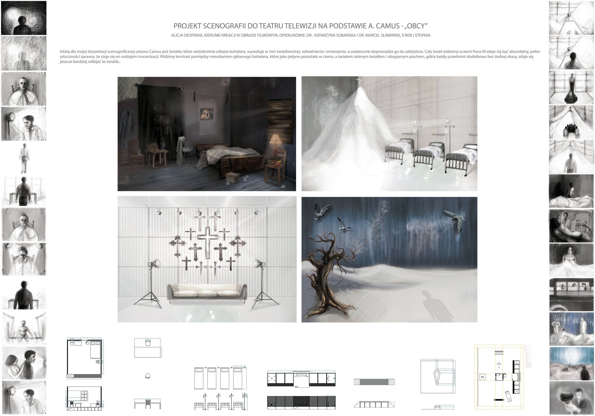 Projekt scenografii do teatru telewizji na podstawie „Obcego” A. Camus