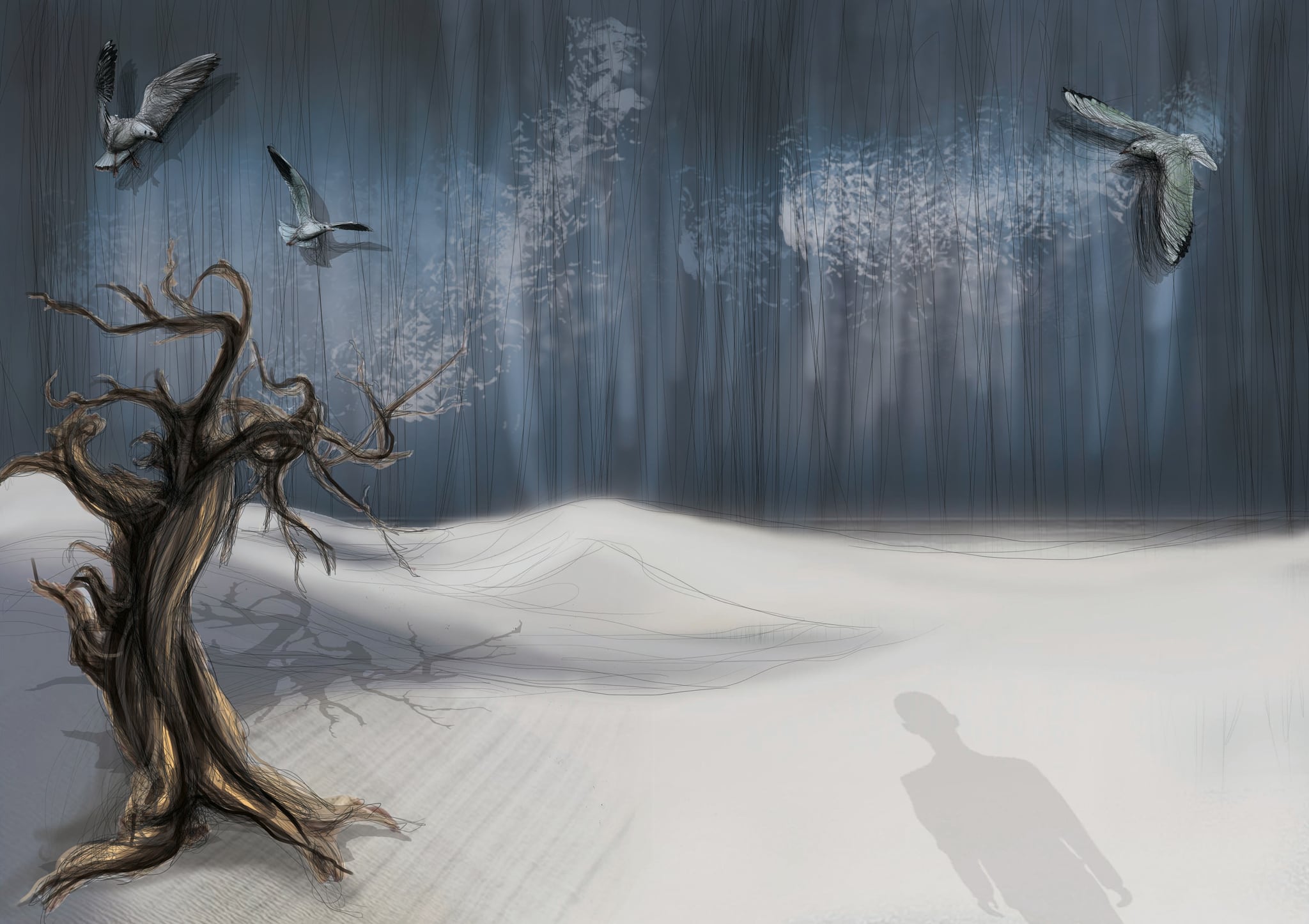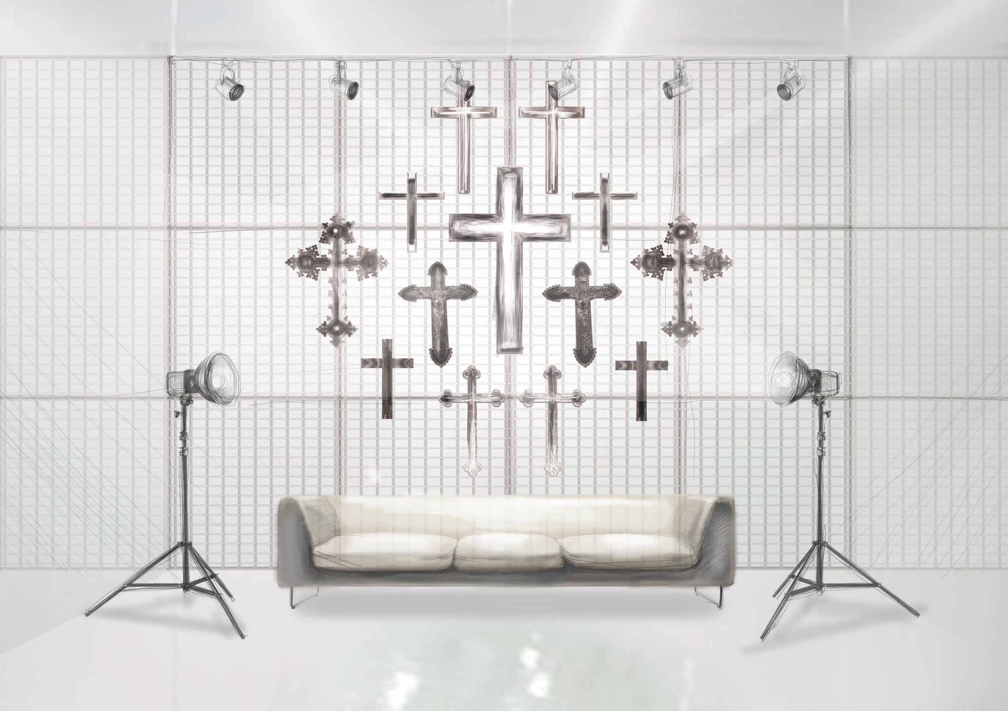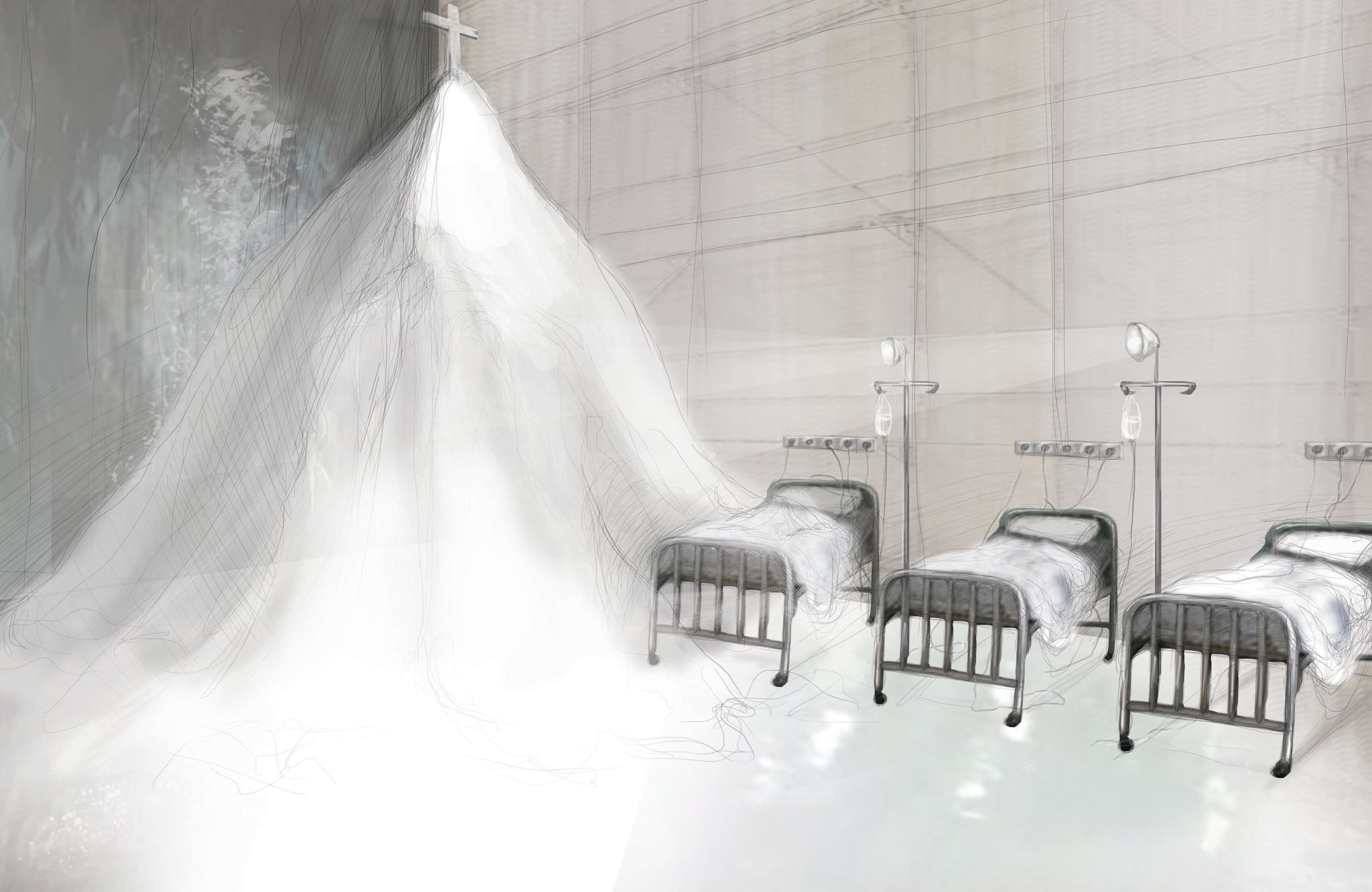 Projekt scenografii do teatru telewizji na podstawie „Obcego” A. Camus